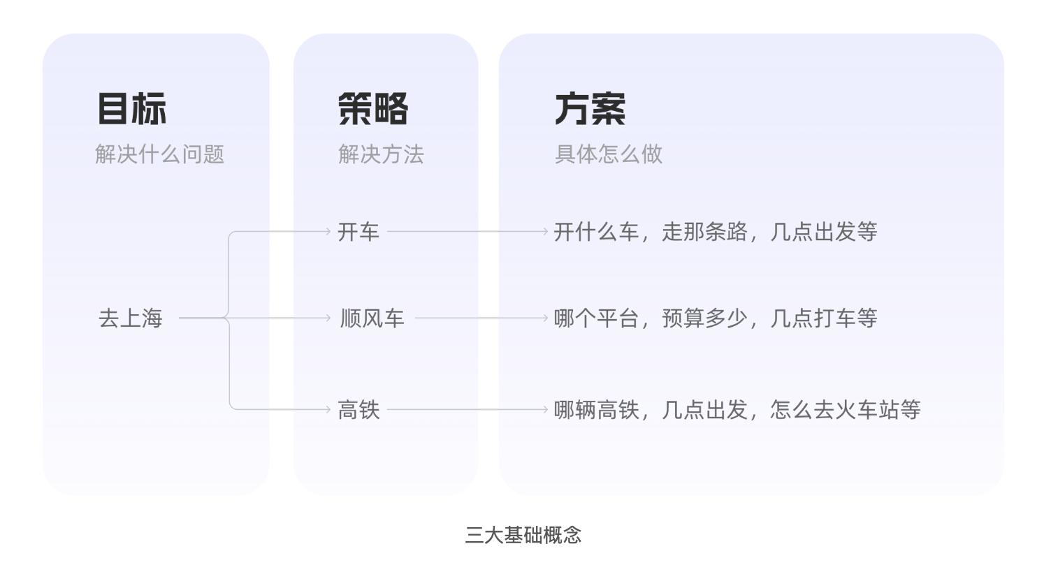 生活中的例子更易理解:業(yè)務(wù)目標(biāo)是 “半年內(nèi)減重 10 斤”,設(shè)計(jì)目標(biāo)(對應(yīng)個(gè)人行動(dòng)目標(biāo))是 “每月運(yùn)動(dòng)頻次提升 4 次、飲食熱量控制在 1500 大卡內(nèi)”,策略是 “選擇家門口的健身房降低通勤成本”“用飲食 APP 記錄熱量”,方案是 “每周一 / 三 / 五晚 7 點(diǎn)健身”“早餐搭配雞蛋 + 燕麥”。